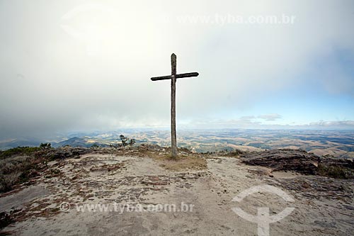 [+] landform, [+] geography, [+] rock formation, [+] mountain, [+] hill, [+] religion, [+] spirituality, [+] religiosity, [+] Cruzeiro Hill, [+] montane grassland, [+] vegetation, [+] grass, [+] lawn, [+] crucifix, [+] cross, [+] faith, [+] State Park, [+] Ibitipoca State Park, [+] forest area, [+] zona da mata, [+] Southeast Region, [+] Minas Gerais, [+] tourism, [+] natural park, [+] ecological park, [+] environmental preservation, [+] conservation unit, [+] Atlantic Rainforest, [+] nature, [+] green area, [+] park