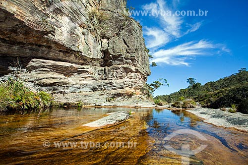 Subject: View of the Miragens Lake (Mirages Lake) with the Paredao de Santo Antonio (Big Wall of Santo Antonio) - Ibitipoca State Park / Place: Lima Duarte city - Minas Gerais state (MG) - Brazil