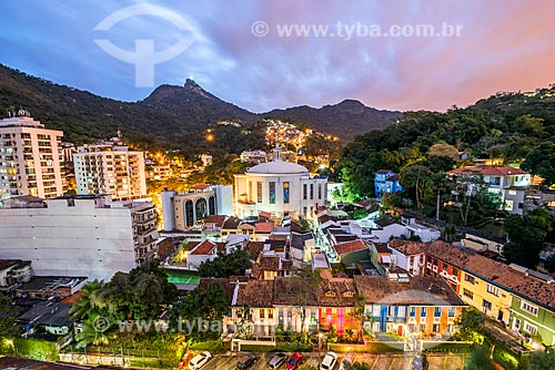 Subject: View of the Saint Jude the Apostle Church with Christ the Redeemer in the background during the nightfall / Place: Cosme Velho neighborhood - Rio de Janeiro city - Rio de Janeiro state (RJ) - Brazil