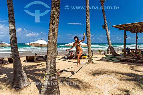 Subject: Woman practicing slackline - Taipus de fora beach / Place: Barra Grande village - Marau city - Bahia state (BA) - Brazil