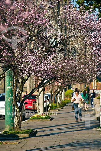 [+] flowering, [+] plant, [+] flowery, [+] flower, [+] flora, [+] people, [+] pedestrian, [+] green area, [+] street, [+] trunk, [+] branch, [+] leaf, [+] nature, [+] vegetation, [+] tree, [+] landscape, [+] wooded, [+] afforestation, [+] cherry-tree, [+] South Region, [+] person, [+] Rio Grande do Sul, [+] Gaucha Mountain Range