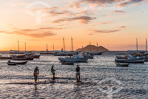 Subject: View of the sculpture to Three Fishermens - Armacao Beach waterfront - during the sunset / Place: Armacao dos Buzios city - Rio de Janeiro state (RJ) - Brazil