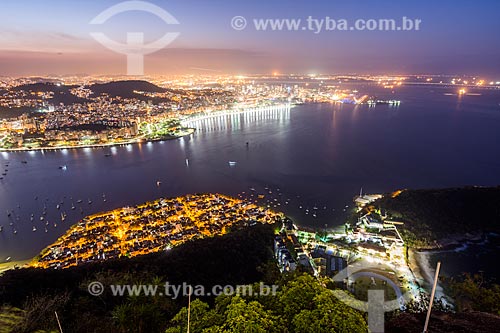 Subject: View of Urca neighborhood with the Flamengo Landfill in the background from Sugarloaf during the nightfall / Place: Urca neighborhood - Rio de Janeiro city - Rio de Janeiro state (RJ) - Brazil