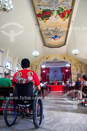 Subject: Faithful wheelchair user - Church of Saints Cosmas and Damian / Place: Andarai neighborhood - Rio de Janeiro city - Rio de Janeiro state (RJ) - Brazil