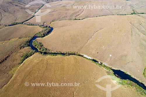 Subject: Drone view of Sao Francisco River in the upper part of the Serra da Canastra / Place: Sao Roque de Minas city - Minas Gerais state (MG) - Brazil