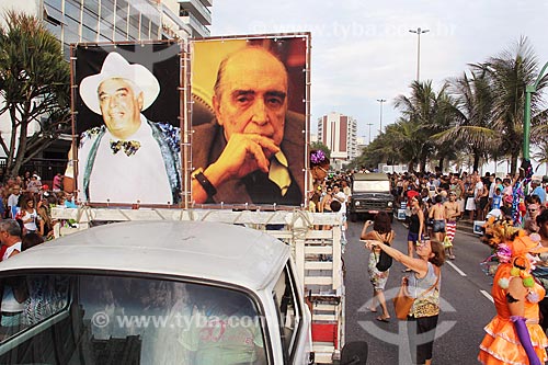 Subject: Parade of Banda de Ipanema - car with pictures of Albino Pinheiro - founder of Banda de Ipanema carnival street troup - to the left and Oscar Niemeyer to the right / Place: Ipanema - Rio de Janeiro city - Rio de Janeiro state (RJ) - Brazil