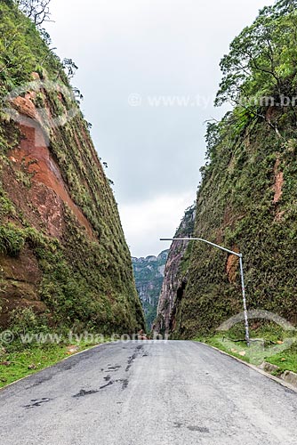 Subject: View of snippet of SC-370 Highway - Corvo Branco Mountain Range / Place: Urubici city - Santa Catarina state (SC) - Brazil