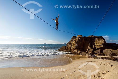 Subject: Practitioner of slackline near to Leblon Beach during the dawn / Place: Leblon neighborhood - Rio de Janeiro city - Rio de Janeiro state (RJ) - Brazil