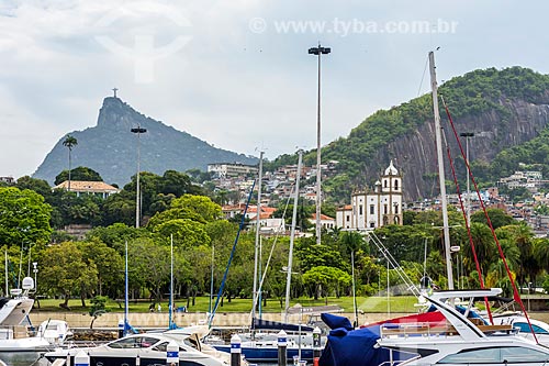 Subject: View of the Nossa Senhora da Gloria do Outeiro Church (1739) with the Christ the Redeemer (1931) in the background from Guanabara Bay / Place: Gloria neighborhood - Rio de Janeiro city - Rio de Janeiro state (RJ) - Brazil