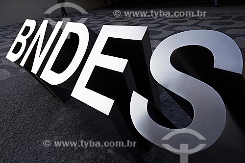 Subject: Logo of the National Bank for Economic and Social Development (BNDES) opposite to the headquarter / Place: City center neighborhood - Rio de Janeiro city - Rio de Janeiro state (RJ) - Brazil