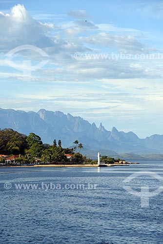 Subject: View of the Lighthouse-clock Mesbla - replica of clock of Mesbla building - Gaivotas Beach with the Serra dos Orgaos National Park in the background / Place: Paqueta neighborhood - Rio de Janeiro city - Rio de Janeiro state (RJ) - Brazil