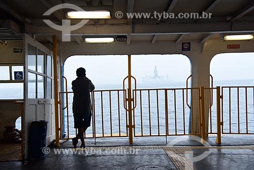 Subject: Silhouette of man inside of barge that makes crossing between Rio de Janeiro and Paqueta Island / Place: Rio de Janeiro city - Rio de Janeiro state (RJ) - Brazil