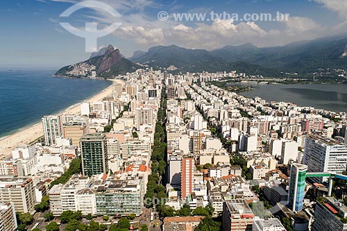 Subject: Picture taken with drone of the Ipanema neighborhood with the Morro Dois Irmaos (Two Brothers Mountain) and Rock of Gavea in the background / Place: Ipanema neighborhood - Rio de Janeiro city - Rio de Janeiro state (RJ) - Brazil