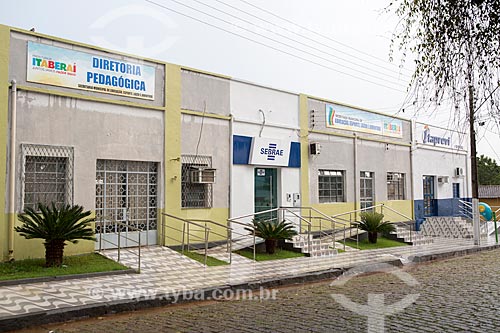 Subject: Facade of headquarters of the Department of Education, Sports, Leisure and Youth and the SEBRAE (Brazilian Service of Support for Micro and Small Businesses) - Presidente Alves de Castro Street / Place: Itaberai city - Goias state (GO) - Brazil