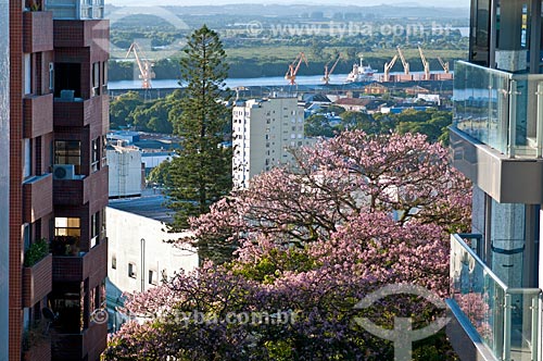 Subject: Prédios do centro do Porto Alegre with the Porto Alegre Port in the background / Place: Porto Alegre city - Rio Grande do Sul state (RS) - Brazil