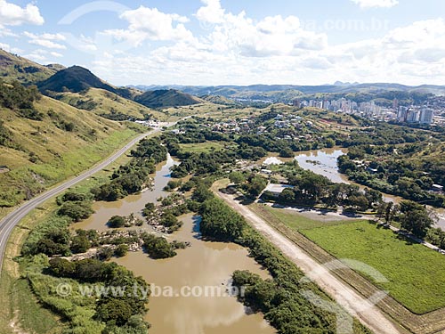 Subject: Picture taken with drone of the Paraiba do Sul River and the Km 170 of BR-393 highway to the left with the Tres Rios city in the background / Place: Tres Rios city - Rio de Janeiro state (RJ) - Brazil