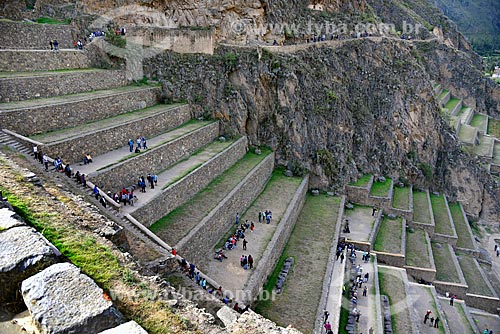 Subject: Tourists - Inca terraces - Archaeological National Park of Ollantaytambo / Place: Ollantaytambo city - Cusco Department - Peru