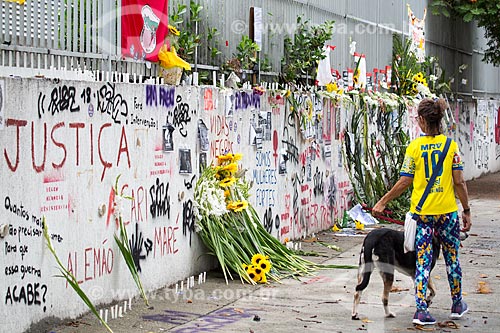 Subject: Tributes to remember 1 month for the murder of councilwoman Marielle Franco - John Paul I Street - where she got shot dead on March 14, 2018 / Place: Estacio neighborhood - Rio de Janeiro city - Rio de Janeiro state (RJ) - Brazil