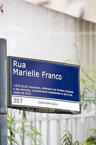 Subject: Detail of plaque in honor of councilwoman Marielle Franco - corner of John Paul I Street with Joaquim Palhares Street / Place: Estacio neighborhood - Rio de Janeiro city - Rio de Janeiro state (RJ) - Brazil