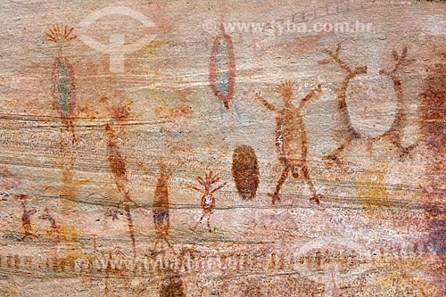 Subject: Detail of rupestrian painting - animals and people figures - Archaeological Site of Toca do Joao Arsena - Serra da Capivara National Park / Place: Sao Raimundo Nonato city - Piaui state (PI) - Brazil