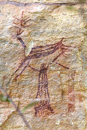 Subject: Detail of rupestrian painting - animals and people figures - Archaeological Site of Toca Pinga do Boi - Serra da Capivara National Park / Place: Sao Raimundo Nonato city - Piaui state (PI) - Brazil