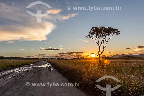 [+] evening, [+] dusk, [+] nightfall, [+] dirt road, [+] path, [+] sunset, [+] twilight, [+] vegetation, [+] tree, [+] cerrado, [+] cloud, [+] sky, [+] Goias, [+] Midwest Region, [+] landscape, [+] Veadeiros Plateau, [+] nature, [+] green area, [+] tourism
