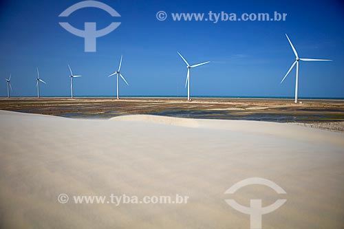 Subject: Detail of aerogenerators of the Pedra do Sal Wind Farm (Stone of Salt Wind Farm) - Parnaiba Delta / Place: Ilha Grande city - Piaui state (PI) - Brazil