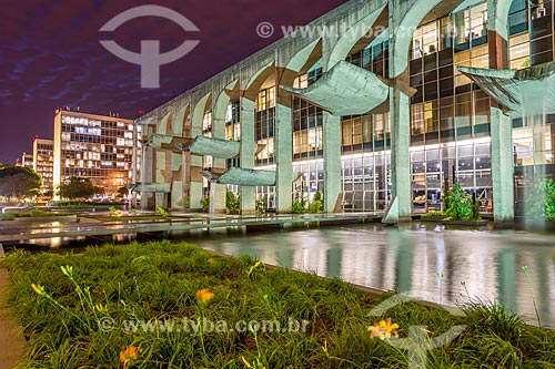 Subject: Side facade of the Palace of Justice (1963) - headquarters of the Ministry of Justice - at night / Place: Brasilia city - Distrito Federal (Federal District) (DF) - Brazil