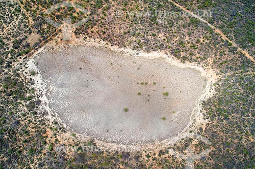 Subject: Picture taken with drone of the dry dam / Place: Salgueiro city - Pernambuco state (PE) - Brazil