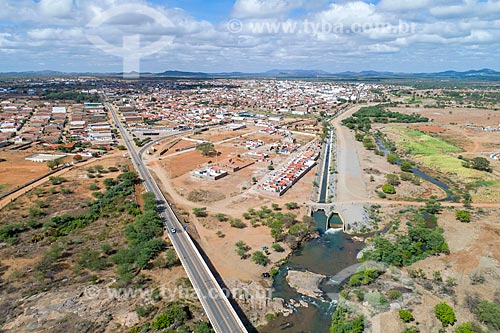 Subject: Picture taken with drone of flows out of channel of the Project of Integration of Sao Francisco River with the watersheds of Northeast setentrional to Paraiba River - duct to the right / Place: Monteiro city - Paraiba state (PB) - Brazil