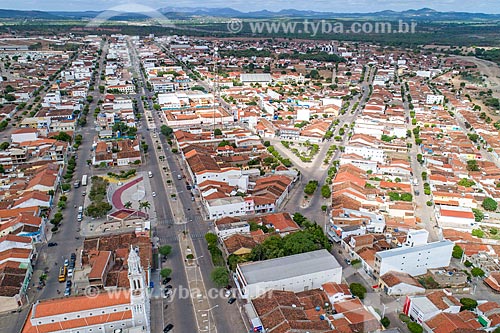 Subject: Picture taken with drone of the snippet of the Coronel Joao Santa Cruz Street with the Our Lady of Sorrows Church / Place: Monteiro city - Paraiba state (PB) - Brazil