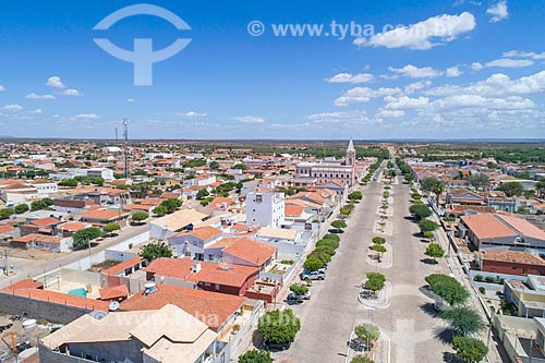 Subject: Picture taken with drone of the snippet of Coronel Jeronimo Pires Avenue with the Our Lady of Patronage Church (XIX century) / Place: Belem de Sao Francisco city - Pernambuco state (PE) - Brazil