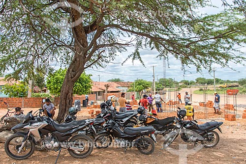 Subject: Motorcycles parked during the joint effort to construction hut - Caatinga Grande community - Truka indigenous land - INCREASE OF 100% OF THE VALUE OF TABLE / Place: Cabrobo city - Pernambuco state (PE) - Brazil