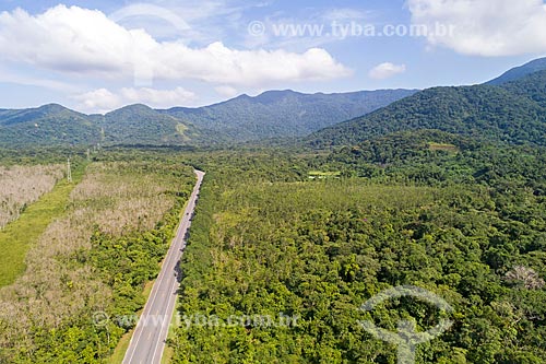 Subject: Picture taken with drone of the Doutor Manuel Hipolito Rego Highway (SP-055) - Sao Sebastiao Center of the Mar Mountains State Park / Place: Sao Sebastiao city - Sao Paulo state (SP) - Brazil