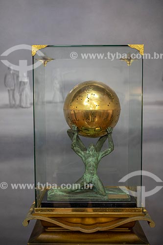 Subject: Detail of urn as a golden globe containing the embalmed heart of Alberto Santos Dumont with bronze figurine of the god Icarus - part of the permanent collection of the Aerospace Museum / Place: Campo dos Afonsos neighborhood - Rio de Janeiro city - Rio de Janeiro state (RJ) - Brazil