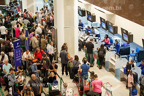 [+] over crowded, [+] crowded, [+] people, [+] person, [+] full, [+] embarkment, [+] boarding, [+] travel, [+] backpack, [+] bag, [+] luggage, [+] baggage, [+] check-in, [+] city center, [+] passenger, [+] Santos Dumont Airport, [+] airport, [+] Southeast Region, [+] capital
