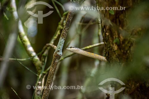 Subject: Detail of parrot snake (Leptophis ahaetulla) - Iguassu National Park / Place: Foz do Iguacu city - Parana state (PR) - Brazil