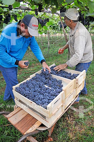 Subject: Detail of rural workers harvesting Isabella grape / Place: Sao Francisco city - Sao Paulo state (SP) - Brazil