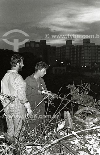 Subject: Labourer of the National Nuclear Energy Commission (CNEN) analyzing the contamination focus after accident with cesium-137 - Central Sector of Goiania city / Place: Goiania city - Goias state (GO) - Brazil