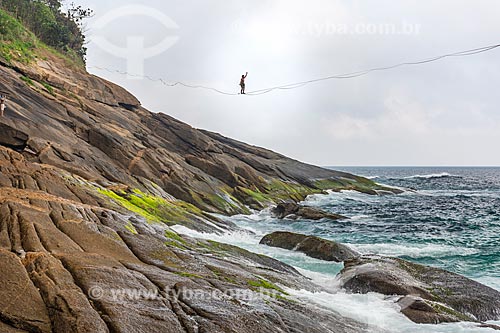 Subject: Practitioner of slackline - Rio de Janeiro waterfront / Place: Leblon neighborhood - Rio de Janeiro city - Rio de Janeiro state (RJ) - Brazil