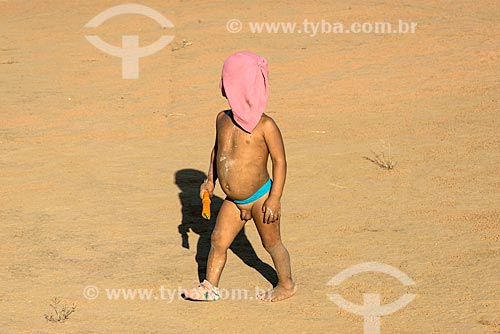 Subject: Indigenous boy hiding the face - Aiha village of the Kalapalo tribe - INCREASE OF 100% OF THE VALUE OF TABLE / Place: Querencia city - Mato Grosso state (MT) - Brazil