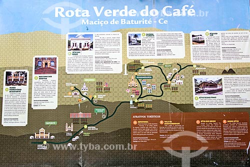 Subject: Tourist information panel indicating the tourist attractions of the Coffee Green Route / Place: Guaramiranga city - Ceara state (CE) - Brazil