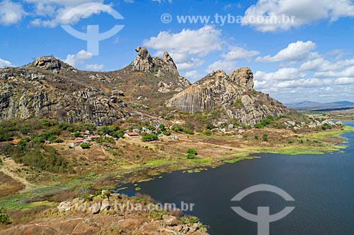 Subject: Picture taken with drone of the Cedar Dam with the Stone of Galinha Choca in the background / Place: Quixada city - Ceara state (CE) - Brazil
