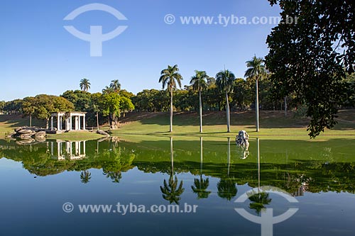 Subject: View of lake of the Quinta da Boa Vista Park with the Temple of Apollo (1910) - to the left - and singing of the Mermaids sculpture - to the right / Place: Sao Cristovao neighborhood - Rio de Janeiro city - Rio de Janeiro state (RJ) - Brazil