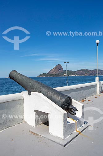 Subject: Cannon of the old Our Lady of the Conception Villegagnon Fortress - now houses the Brazilian Naval Academy - with the Sugarloaf in the background / Place: City center neighborhood - Rio de Janeiro city - Rio de Janeiro state (RJ) - Brazil