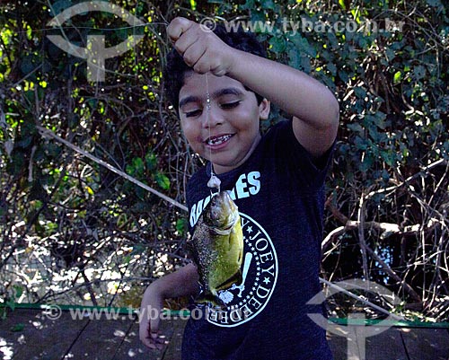 Subject: Detail of boy during fishing of piranha - Saint Dominic corixo - affluent of the Miranda River / Place: Miranda city - Mato Grosso do Sul state (MS) - Brazil