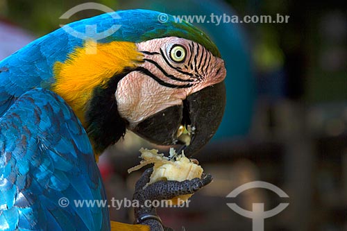Subject: Detail of blue-and-yellow macaw (Ara ararauna) - also known as the Blue-and-gold Macaw - San Domingos Farm / Place: Miranda city - Mato Grosso do Sul state (MS) - Brazil