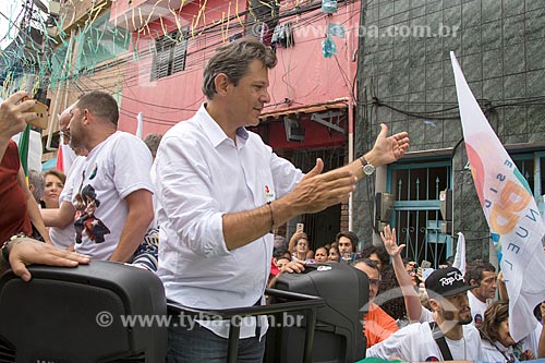 Subject: Detail of Fernando Haddad - presidential candidate for the Workers Party (PT) - during motorcade - slum of Heliopolis / Place: Cidade Nova Heliopolis neighborhood - Sao Paulo city - Sao Paulo state (SP) - Brazil