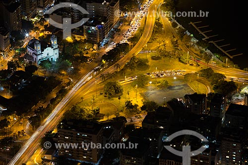 Subject: View of the Santa Margarida Maria Parish (1956) - to the left - from the Christ the Redeemer at night / Place: Lagoa neighborhood - Rio de Janeiro city - Rio de Janeiro state (RJ) - Brazil