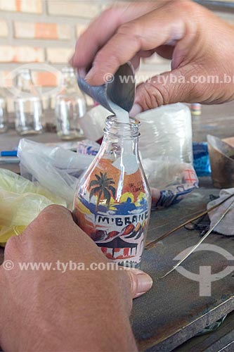 Subject: Detail of artisan making a brazilian sand colored bottles / Place: Beberibe city - Ceara state (CE) - Brazil
